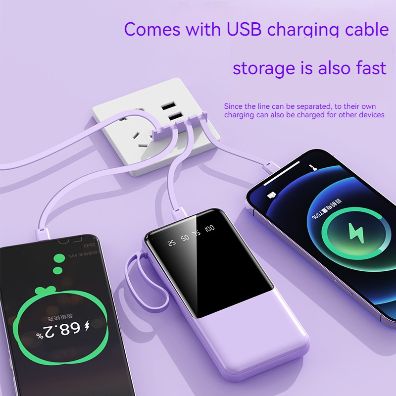 【SG Local Stock】20000mAh Power Bank Portable With 4 Wires LED Flashlight