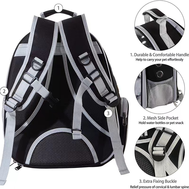 There are breathable mesh on the sides. The bag has a large capacity and is very convenient to carry on the back. It has a transparent window and is spacious and bright. The cat bag is really a magical tool for taking cats out. Mine is very comfortable and spacious when staying in it.