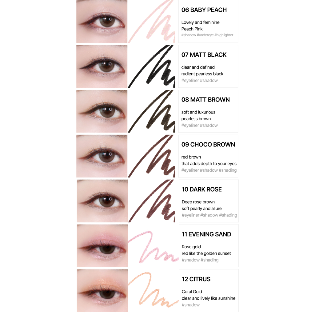 Suitability:best for humid Singapore weather Formulation:creamy formulation helps with gliding Performance:long lasting, smudge proof, water proof Super fast delivery in just 2 days and received all in good condition. The colours are very pretty! Tried using the shade in matte brown 08 from a previous purchase and it lasted me a good 9 hours despite not using any primer/setting powder, and being out and about outdoors and it didn’t smudge or bleed into the rest of the eyelid areas even when my face becomes oily by night time! Very impressed with this so returned to buy more colours!