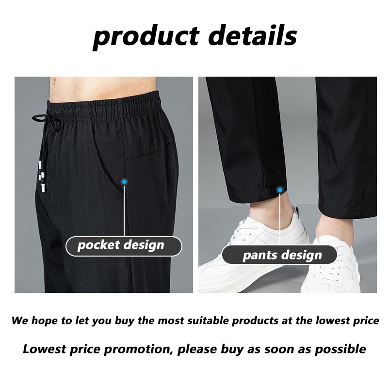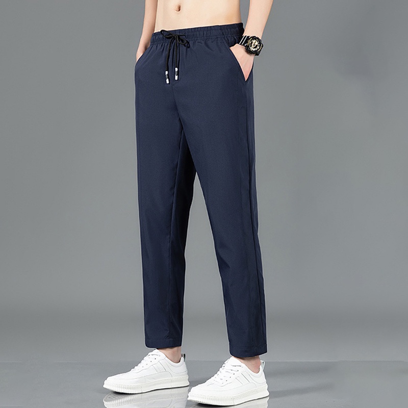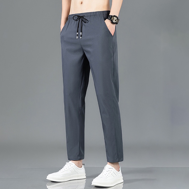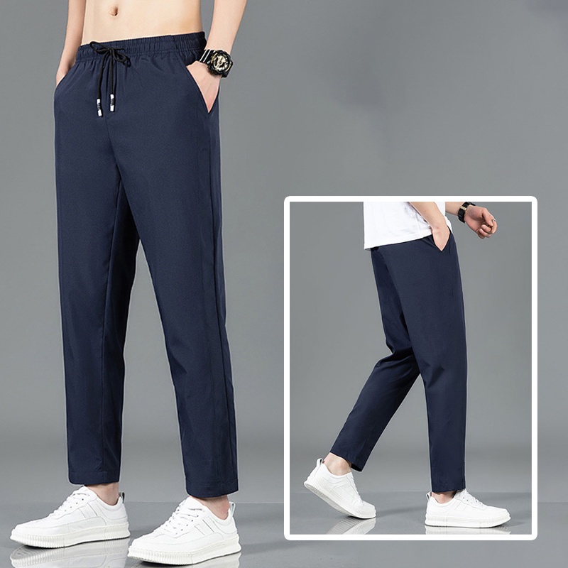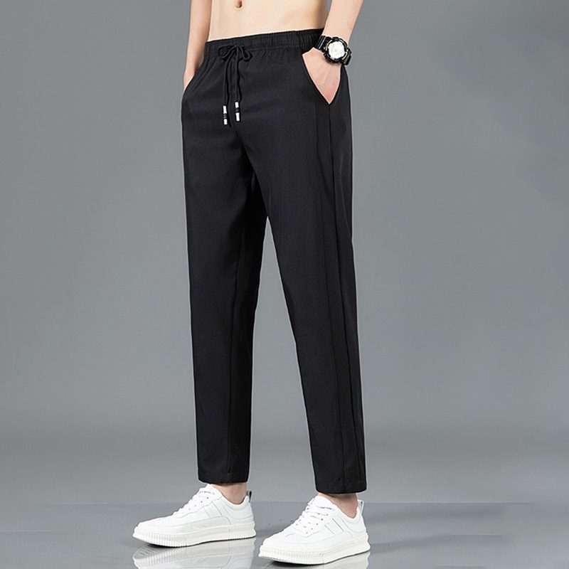[Local Delivery] Korean Men's Slim Fit Pants Thin Ice Silk Breathable Casual Long Pant Fashion Trousers